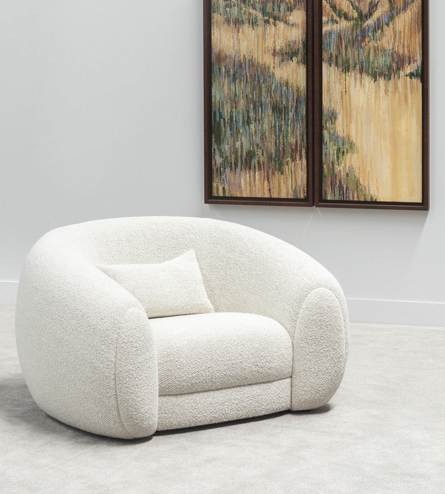 A thick, robust, and warmly enveloping structure, with its rounded shape, frames a large, curved seat placed on a base with invisible feet. The Barnabas armchair embodies a certain "Art de Vivre": voluptuousness, luxury, beauty, relaxation and sharing.