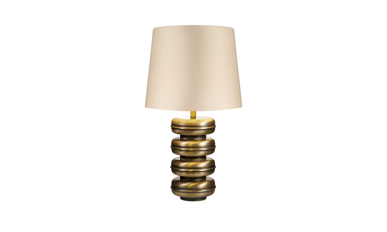 Tadeo is table lamp with a singular and regular shape, with a central cylinder surrounded by four toric shapes.